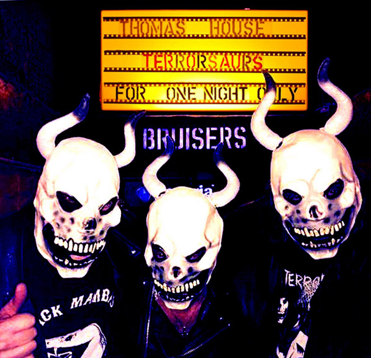 THE TERRORSAURS (U.K): The Terrorsaurs -Atom age Lizard surf direct from the swamp! Crawlin ' King fink - Bass,El Demonio - Guitar, Big J.Espionage - sticks. An unholy mix of prime instro-schlock harnessing it's inspiration from 60's garage & a wide range of